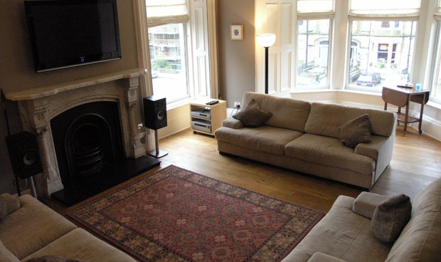 Magnificent drawing room with a wall mounted plasma, DVD system, comfortable couches and oak floors. A great place to relax after a busy day enjoying all Edinburgh has to offer.
