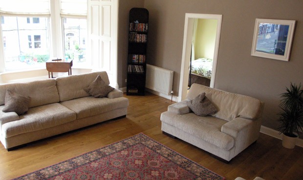 This very large traditional double-upper apartment is ideally situated in the upmarket Newington area, close to the city centre and University district of Edinburgh. The property is situated walking distance to a large variety of good restaurants, bars and attractions such as Holy rood Park. It also has great transport links to all part of the city with an excellent bus service from across the street. The property itself has beautiful high ceilings and ornate cornices, spacious rooms, modern décor, natural oak floors and quality furnishings. It benefits from all mod cons including plasma TV and DVD system, and a modern, well-equipped kitchen.