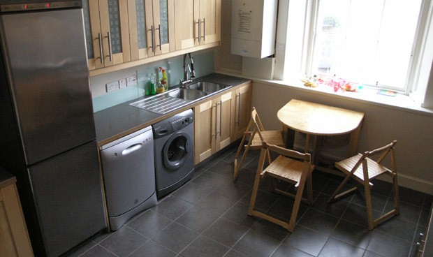The kitchen comprises of a new fitted kitchen with fridge freezer, dishwasher, washing machine, dining table and all the crockery, cutlery and cooking pots etc you’ll need.