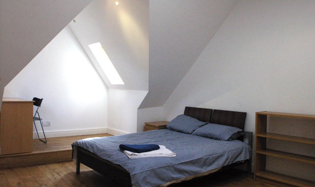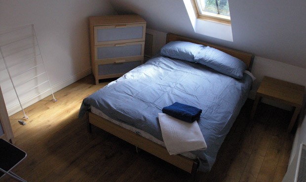 Again this is a front facing room. It is a bright and airy space with high ceilings it has a Velux window and hatch into eaves with lighting installed to make this a useful storage area. Furnishings include, designer double bed, chest of drawers, wardrobe and desk.